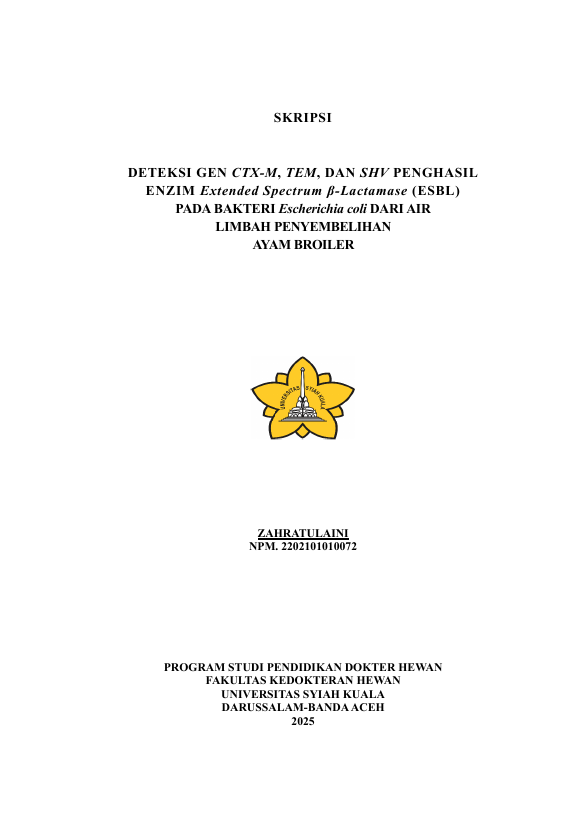 Baca Juga : RESISTENSI ESCHERICIA COLI PENGHASIL EXTENDED SPECTRUM BETA LACTAMASE (ESBL) PADA KLOAKA AYAM BROILERTERHADAP ANTIBIOTIK DI PASAR AL-MAHIRAH KOTA BANDA ACEH (MUHAMMAD FERI ARDIANSYAH, 2025)