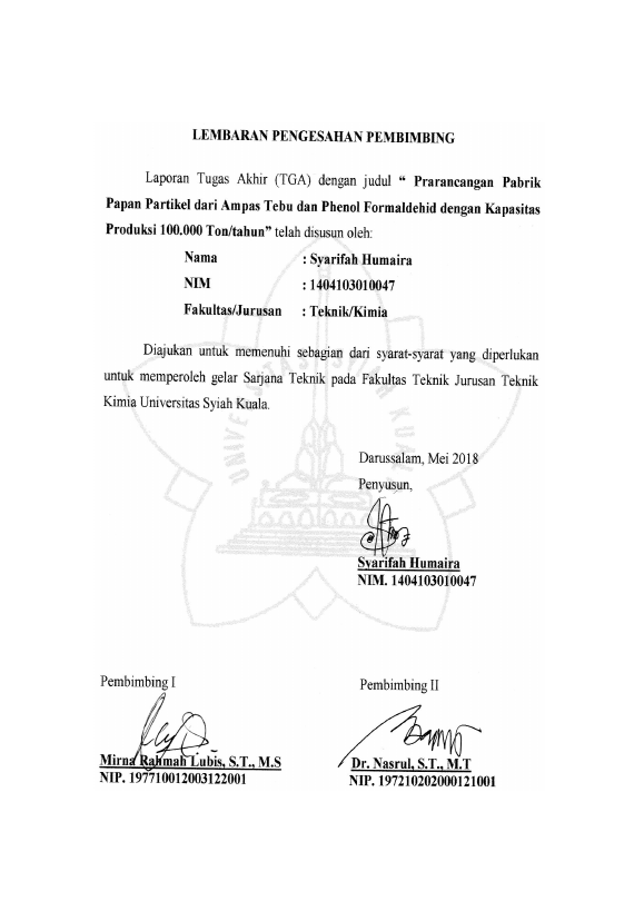 Baca Juga : PRARANCANGAN PABRIK PAPAN PARTIKEL DARI AMPAS TEBU DAN PHENOL FORMALDEHID DENGAN KAPASITAS PRODUKSI 100.000 TON PER TAHUN (INTAN BAHRINA, 2018)