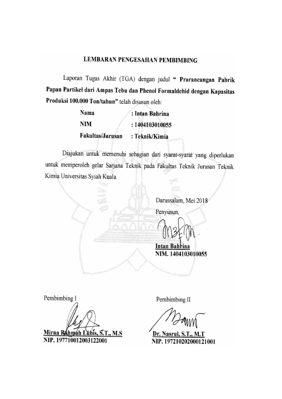 Baca Juga : PRARANCANGAN PABRIK PAPAN PARTIKEL DARI AMPAS TEBU DAN PHENOL FORMALDEHID DENGAN KAPASITAS PRODUKSI 100.000 TON PER TAHUN (INTAN BAHRINA, 2018)
