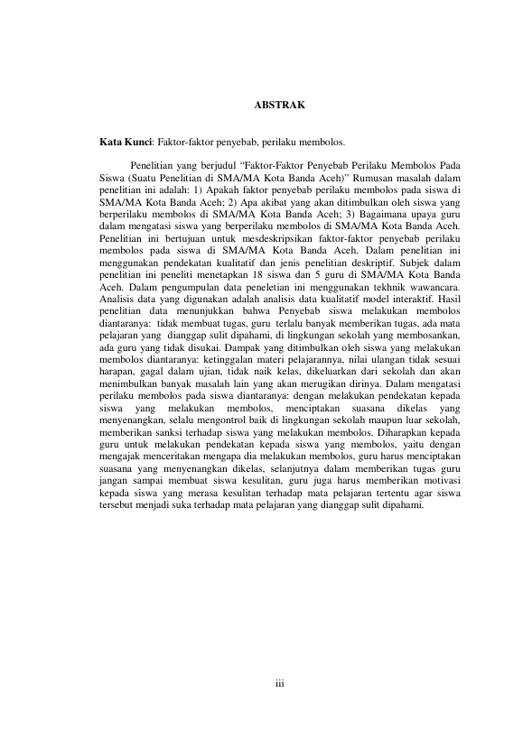 Baca Juga : ANALISIS FAKTOR-FAKTOR PENYEBAB PERILAKU SISWA MEMBOLOS SEKOLAH DI SMP NEGERI 16 BANDA ACEH (Masyithah, 2019)