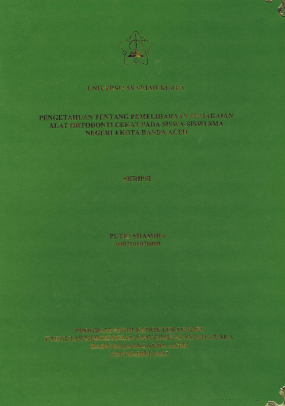 Baca Juga : MOTIVASI PEMAKAIAN ALAT ORTODONTI CEKAT PADA MAHASISWA PROGRAM STUDI KEDOKTERAN GIGI UNSYIAH RNANGKATAN 2006 - 2009 (Maya Ferdina Putri, 2023)