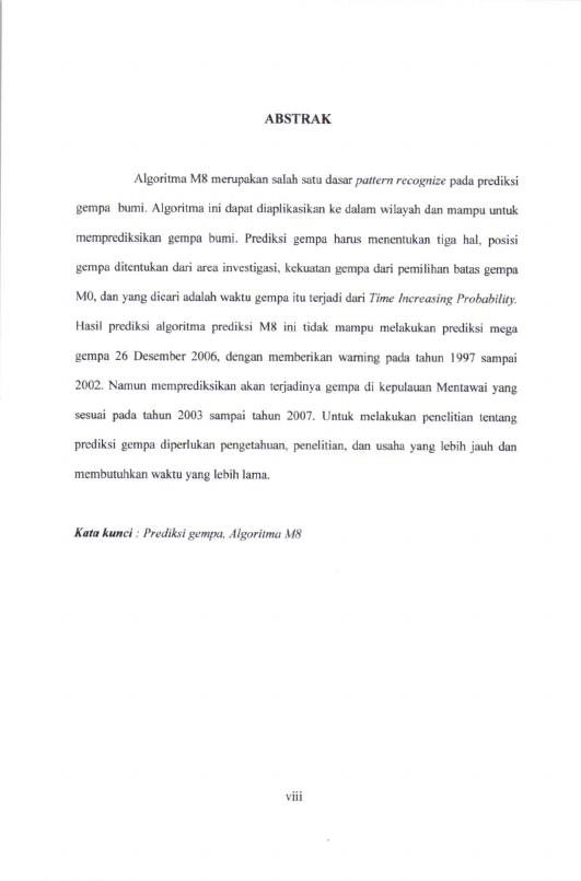 Faisal Ibnu Hajar, PENERAPAN PEMOGRAMAN ALGORITMA M8 TERHADAP PREDIKSI GEMPA BUMI SUMATRA. Banda Aceh Fakultas Matematika dan Ilmu Pengetahuan Alam,2008