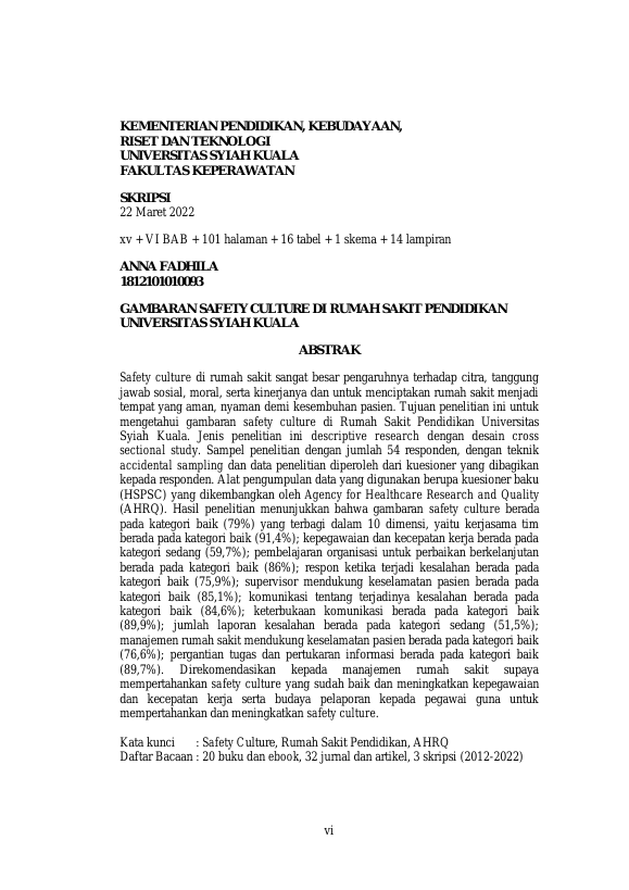 Baca Juga : PERSEPSI MAHASISWA PENDIDIKAN PROFESI NERS DALAM PENERAPAN STANDAR PATIENT SAFETY DI RUMAH SAKIT UMUM DAERAH BANDA ACEH (Sulistiana Putri, 2018)