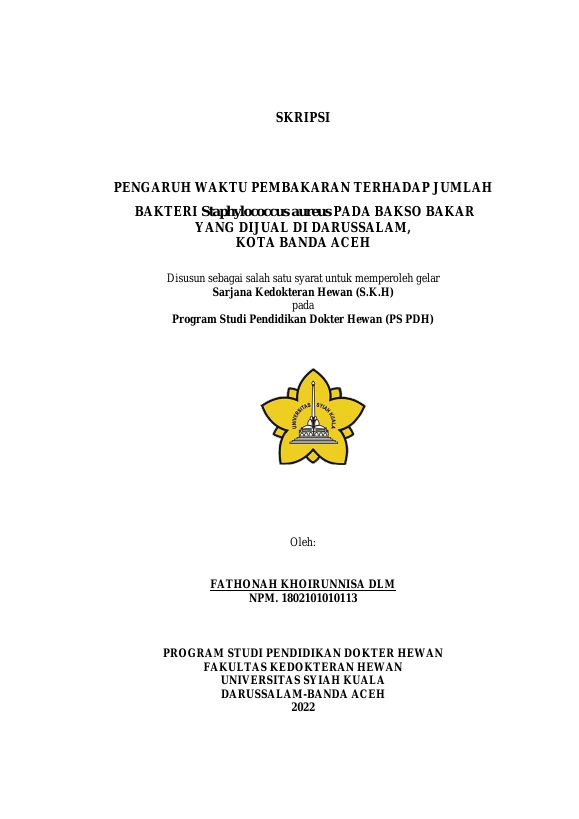 Baca Juga : DETEKSI CEMARAN SALMONELLA SP. PADA BAKSO BAKAR YANG DIJUAL DI KOPELMA DARUSSALAM BANDA ACEH (FINDA FRISCA NOFRIANTI, 2022)