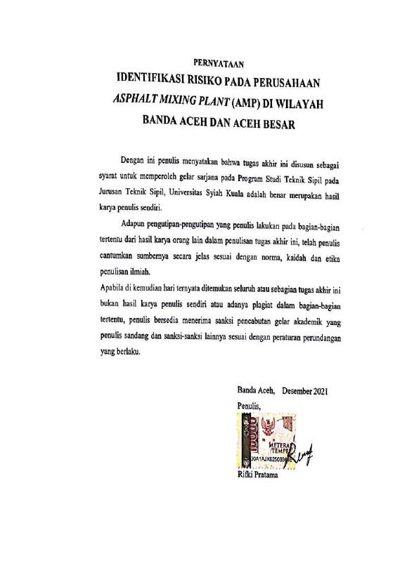 Baca Juga : IDENTIFIKASI FAKTOR – FAKTOR RISIKO PADA PROSES PRODUKSI ASPAL DI UNIT ASPHALT MIXING PLANT (AMP) DI ACEH BESAR (UTARI WIRANDA, 2024)