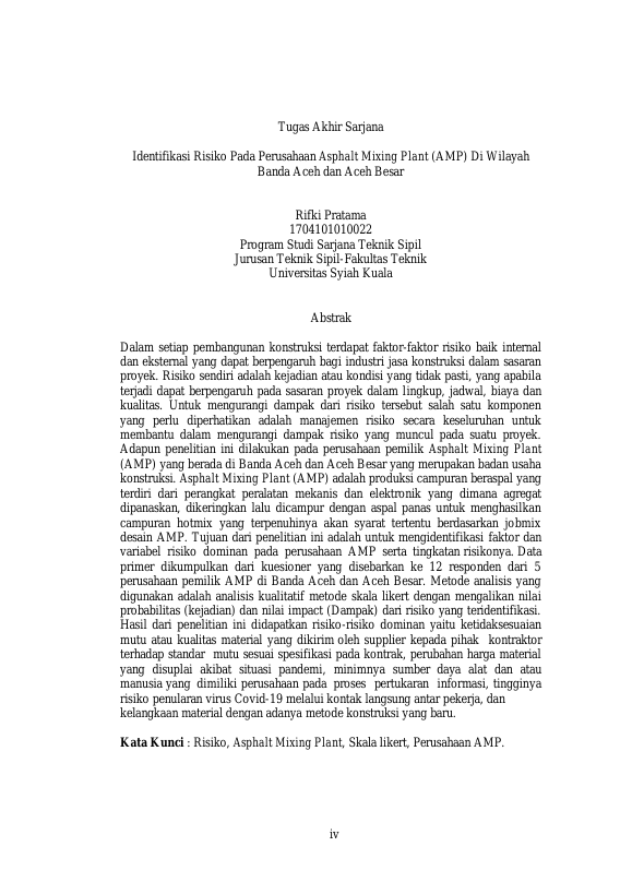 Baca Juga : IDENTIFIKASI FAKTOR – FAKTOR RISIKO PADA PROSES PRODUKSI ASPAL DI UNIT ASPHALT MIXING PLANT (AMP) DI ACEH BESAR (UTARI WIRANDA, 2024)
