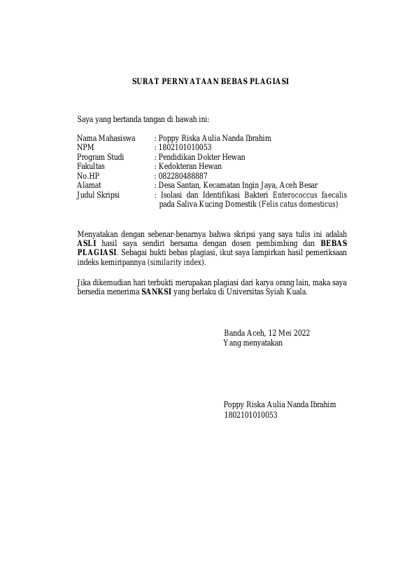 Baca Juga : ISOLASI CANDIDA ALBICANS PADA KUCING DOMESTIK (FELIS CATUS DOMESTICUS) PENDERITA EAR MITES DI KECAMATAN KUTA ALAM (ANGGUN MELZANA, 2025)