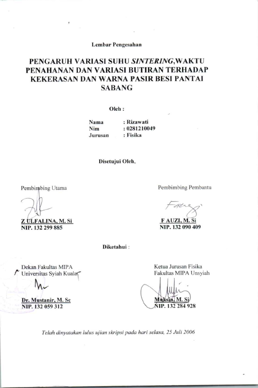 Baca Juga : PENGARUH WAKTU SINTERING DAN UKURAN BUTIRAN TERHADAP KEKERASAN PADA PASIR MINERAL LAMPANAH (ACEH BESAR) (Zuchra Ulfa, 2022)