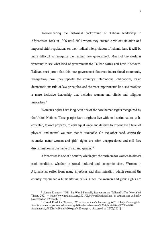 SITI NURHALIZA, THE STATE RESPONSIBILITY OF AFGHANISTAN UNDER TALIBAN REGIME WITH REFERENCE TO ARTICLE 10 OF CONVENTION ON THE ELIMINATION OF ALL FORMS OF DISCRIMINATION AGAINST WOMEN (CEDAW). Banda Aceh Fakultas Hukum (S1),2022