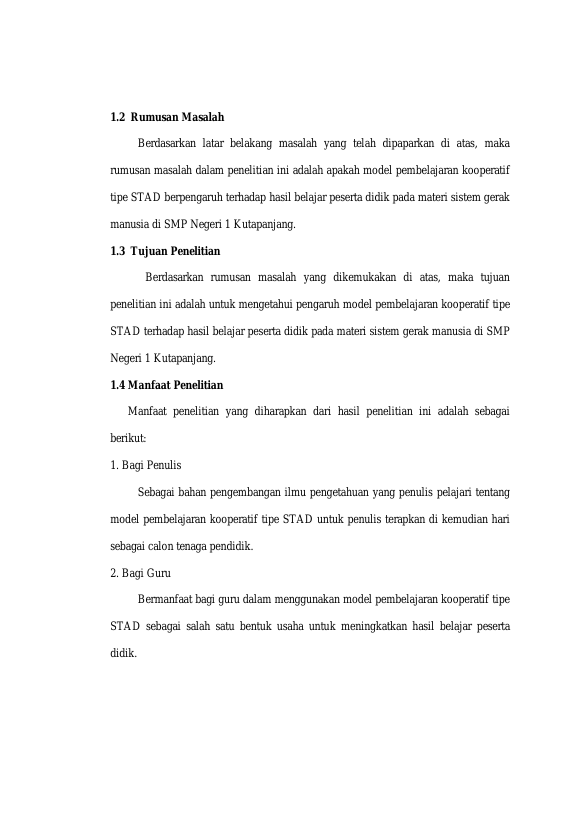 MAHDALENA SARI, PENGARUH MODEL PEMBELAJARAN KOOPERATIF TIPE STAD (STUDENT TEAMS ACHIEVENT DIVISION) TERHADAP HASIL BELAJAR PESERTA DIDIK KELAS VIII PADA MATERI SISTEM GERAK MANUSIA DI SMP NEGERI 1 KUTAPANJANG. Banda Aceh Fakultas KIP,2022