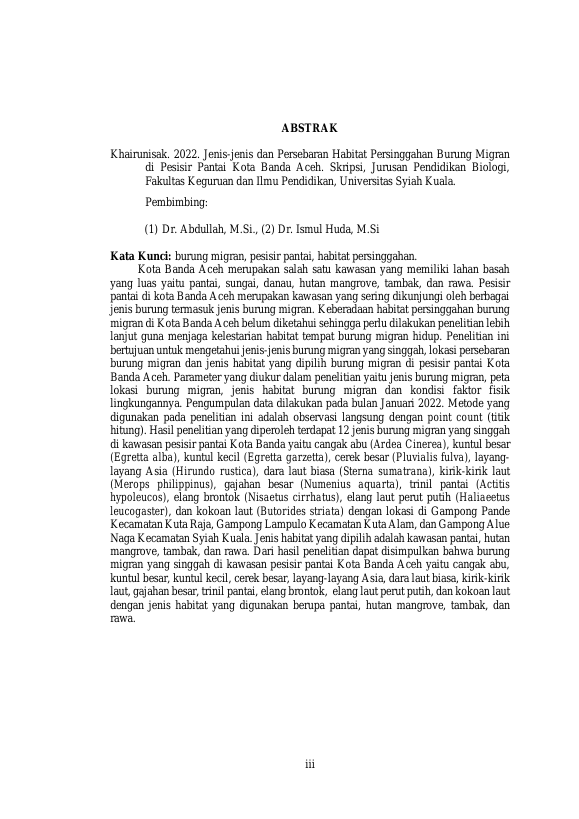 Baca Juga : IDENTIFIKASI DAN STATUS KONSERVASI JENIS BURUNG DI KAWASAN KUALA GIGIENG, ACEH BESAR, ACEH (FIRQA NOOR ARRASY DASOPANG, 2026)
