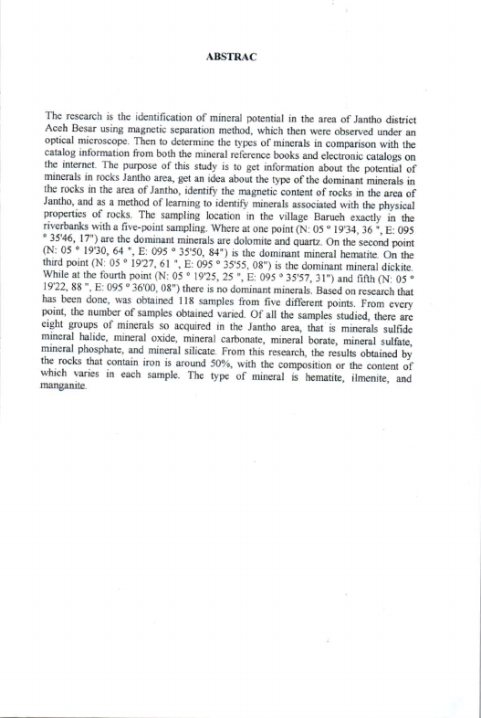 Baca Juga : IDENTIFIKASI POTENSI MINERAL DI DAERAH UJONG PANCU KABUPATEN ACEH BESAR (Zaitun Munar, 2022)