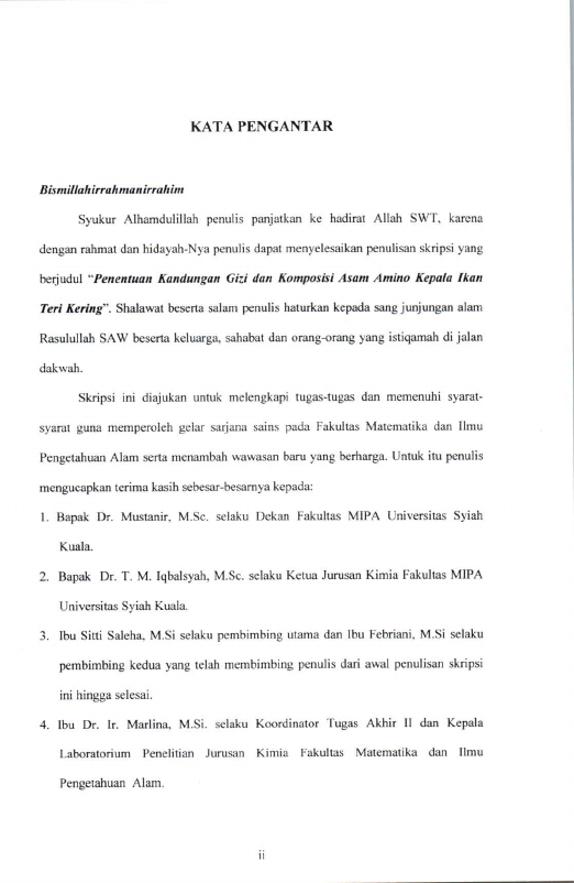 Erni Huda, PENENTUAN KANDUNGAN GIZI DAN KOMPOSISI ASAM AMINO KEPALA IKAN TERI KERING. Banda Aceh Fakultas Matematika dan Ilmu Pengetahuan Alam,2007