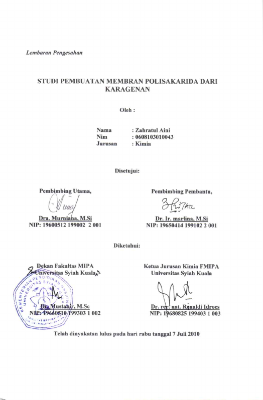 Baca Juga : STUDI PEMBUATAN MEMBRAN POLISAKARIDA DARI KARAGENAN (Zahratul Aini, 2022)