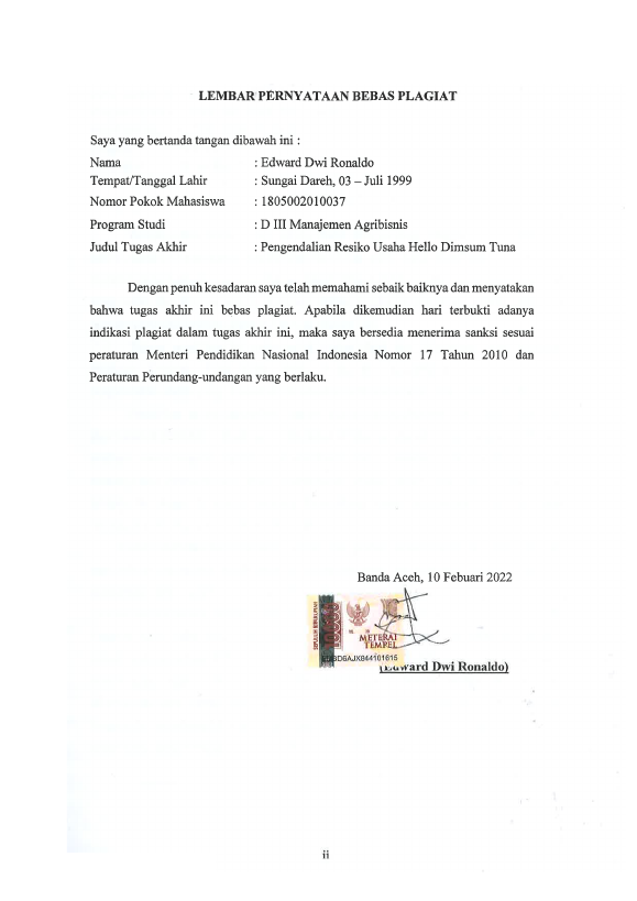 Baca Juga : KELAYAKAN “HELLO DIMSUM” DENGAN MENGGUNAKAN BAHAN MENTAH DAGING IKAN TUNA DI KOTA BANDA ACEH (Rafi Sutan Ramadhana, 2022)