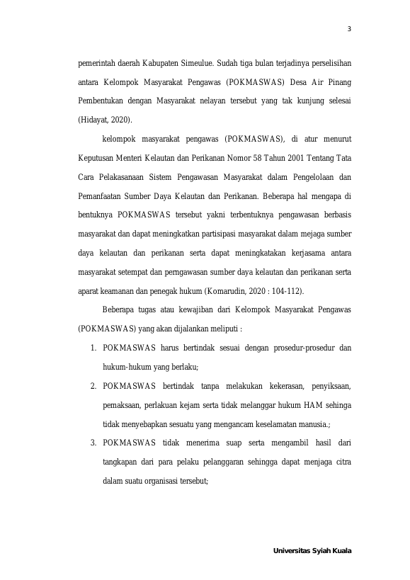 Fiki Festian, PERAN PEMERINTAH KABUPATEN SIMEULUE DALAM PENYELESAIAN KONFLIK ANTAR KELOMPOK MASYARAKAT PENGAWAS DESA AIR PINANG DENGAN NELAYAN DARI LUAR DI PERAIRAN LAUT PULAU PINANG. Banda Aceh Fakultas Imu Sosial dan Politik,2022