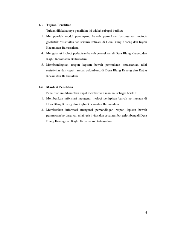 Baca Juga : IDENTIFIKASI STRUKTUR BAWAH PERMUKAAN PADA AREA PEMBANGUNAN JEMBATAN KRUENG KALENG, SABET, ACEH JAYA MENGGUNAKAN METODE SEISMIK REFRAKSI DAN METODE GEOLISTRIK (Intan Maullida, 2016)