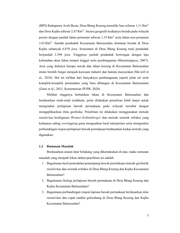 Baca Juga : APLIKASI METODE GEOLISTRIK RESISTIVITAS DAN SEISMIK REFRAKSI UNTUK MENENTUKAN KEDALAMAN BEDROCK (STUDI KASUS: KAWASAN BLANG KRUENG DAN KAMPUNG PERSAHABATAN INDONESIA-TIONGKOK, ACEH BESAR) (Safa Tasya Nabila, 2022)