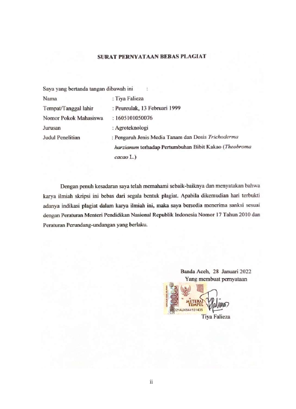 Baca Juga : RESPON PERTUMBUHAN BIBIT KAKAO AKIBAT PEMBERIAN DUA ISOLAT TRICHODERMA PADA BEBERAPA CAMPURAN MEDIA TANAM (Ardiansyah, 2024)