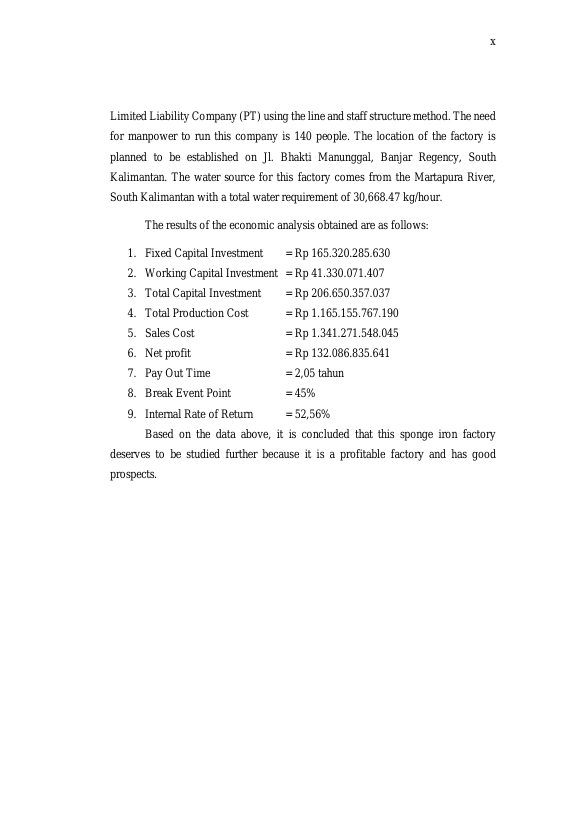 Baca Juga : PRARANCANGAN PABRIK BESI SPON DARI FE2O3 SEBAGAI BAHAN BAKU DAN BATU BARA SEBAGAI REDUKTOR DENGAN KAPASITAS PRODUKSI 300.000 TON/TAHUN (GHINA ALMIRA SYAHETI, 2022)