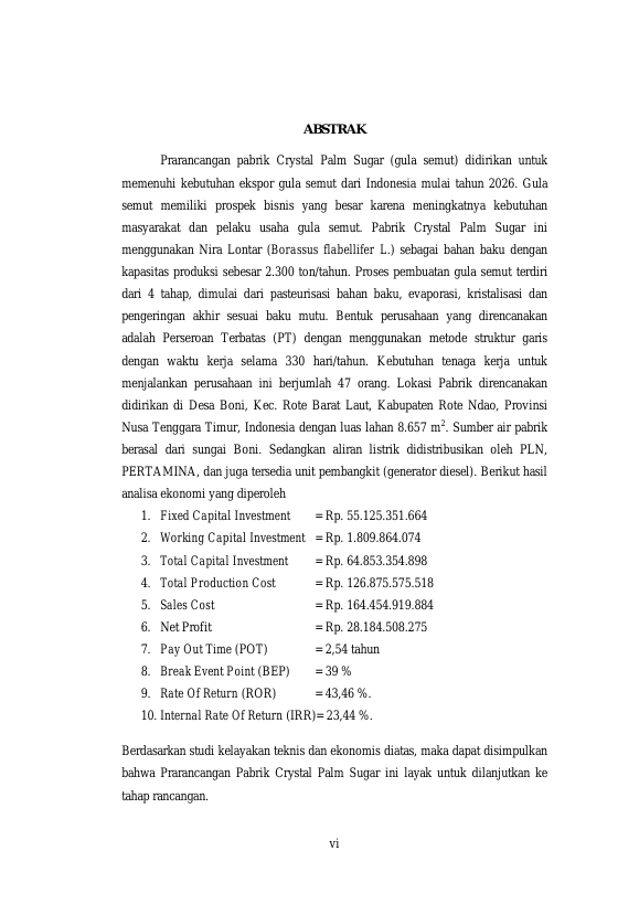 Baca Juga : PRARANCANGAN PABRIK CRYSTAL PALM SUGAR MENGGUNAKAN BAHAN BAKU NIRA LONTAR DENGAN KAPASITAS PRODUKSI 2.300 TON/TAHUN (RYAN ADITYA, 2022)