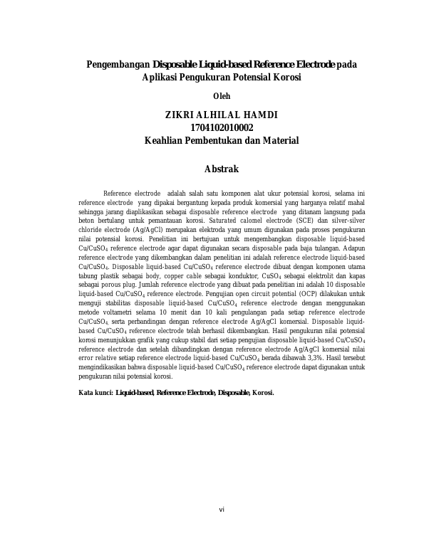 Baca Juga : PENGEMBANGAN DISPOSABLE SOLID-STATE REFERENCE ELECTRODE UNTUK APLIKASI PENGUKURAN POTENSIAL KOROSI PADA BAJA TULANGAN (M. RAFIQI, 2022)