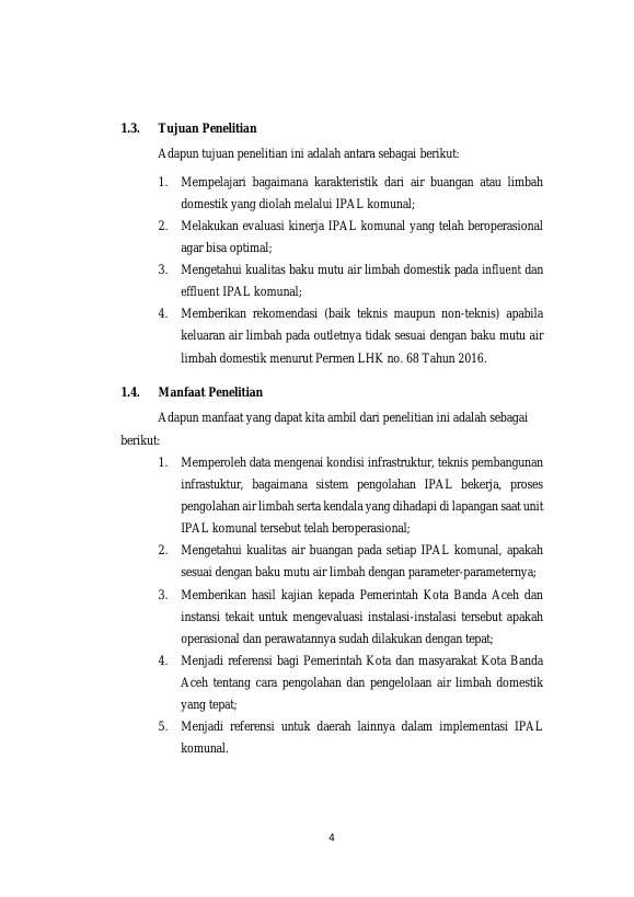 Ikhwanul Muslimin, EVALUASI KUALITAS KELUARAN AIR LIMBAH DOMESTIK PADA INSTALASI PENGOLAHAN AIR LIMBAH (IPAL) KOMUNAL DI KOTA BANDA ACEH. Banda Aceh Program Pasca Sarjana Universitas Syiah Kuala,2022