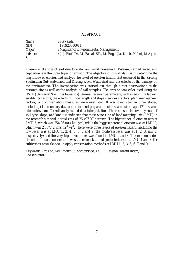 Baca Juga : ANALISIS SEBARAN EROSI LAHAN DAN UPAYA KONSERVASI DAS DENGAN SISTEM VETIVERRN(STUDI KASUS DAS KRUENG TEUNGKU KECAMATAN SEULIMUMRNKABUPATEN ACEH BESAR) (MUHAMMAD IKHSAN, 2014)