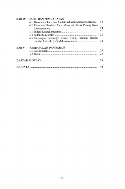 Meutiya Agustina, KEANEKARAGAMAN MAKROZOOBENTOS DI RESERVOIR TELUK PUSONG KOTA LHOKSEUMAWE, PROVINSI ACEH. Banda Aceh Fakultas Matematika dan Ilmu Pengetahuan Alam,2012