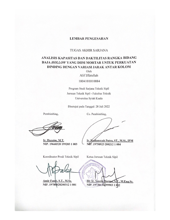 Baca Juga : ANALISIS KAPASITAS DAN DAKTILITAS RANGKA BAJA HOLLOW YANG DIISI MORTAR UNTUK RANGKA DINDING STRUKTURAL (Siti Humayra, 2023)