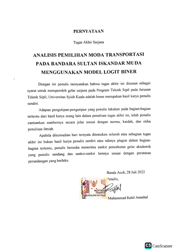 Baca Juga : ANALISIS PEMILIHAN MODA TRANSPORTASI PADA PELABUHAN PENYEBERANGAN ULEE LHEUE MENGGUNAKAN MODEL LOGIT BINER (Muhammad Aufar, 2022)
