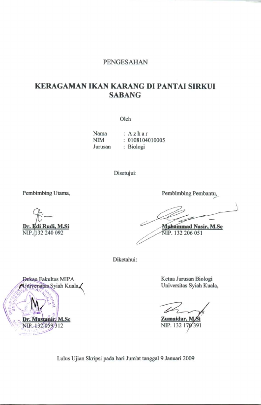 Azhar, KERAGAMAN IKAN KARANG DI PANTAI SIRKUI SABANG. Banda Aceh Fakultas Matematika dan Ilmu Pengetahuan Alam,2009