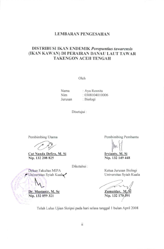 Baca Juga : BIOLOGI REPRODUKSI IKAN ENDEMIK KAWAN (POROPUNTIUS TAWARENSIS) DI DANAU LAUT TAWAR, KABUPATEN ACEH TENGAH (Tia Sundari, 2022)