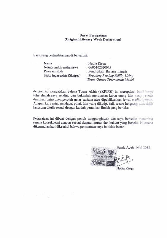 Baca Juga : A COMPARATIVE STUDY OF USING NUMBERED HEADS TOGETHER (NHT) AND TEAM GAMES TOURNAMENT (TGT) IN TEACHING READING COMPREHENSION (AN EXPERIMENTAL RESEARCH AT MAN DARUSSALAM, ACEH BESAR) (Nurrahmaniah, 2021)