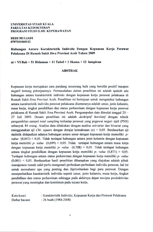 Baca Juga : HUBUNGAN PENGORGANISASIAN RUANG RAWAT DENGAN KEPUASAN KERJA PERAWAT PELAKSANA DI RUANG RAWAT INAP RUMAH SAKIT JIWA PROVINSI ACEH TAHUN 2009 (Fauzan, 2022)
