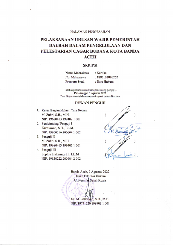 Baca Juga : PELAKSANAAN URUSAN WAJIB PEMERINTAH DAERAH DALAM PENGELOLAAN DAN PELESTARIAN CAGAR BUDAYA KOTA BANDA ACEH (KARTIKA, 2022)