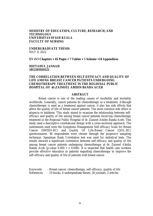 Baca Juga : HUBUNGAN KEPATUHAN KEMOTERAPI DENGAN TINGKAT KUALITAS HIDUP PASIEN KANKER PAYUDARA DI RSUD DR ZAINOEL ABIDIN BANDA ACEH (Wina Sri Utama, 2019)