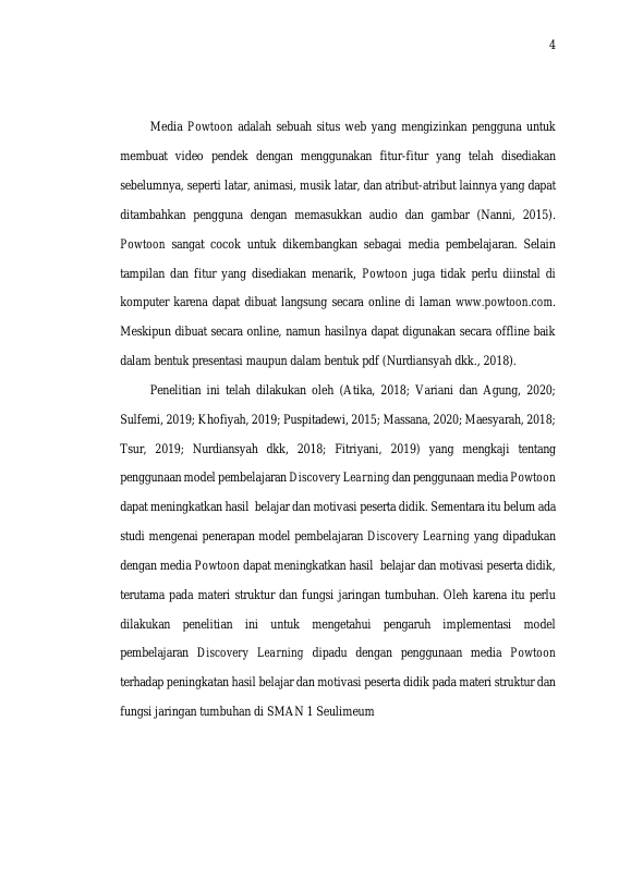 Cut Saila, IMPLEMENTASI MODEL PEMBELAJARAN DISCOVERY LEARNING DIPADU DENGAN MEDIA POWTOON TERHADAP PENINGKATAN HASIL BELAJAR DAN MOTIVASI PESERTA DIDIK PADA MATERI STRUKTUR DAN FUNGSI JARINGAN TUMBUHANRNDI SMAN 1 SEULIMEUM. Banda Aceh Fakultas KIP,2022