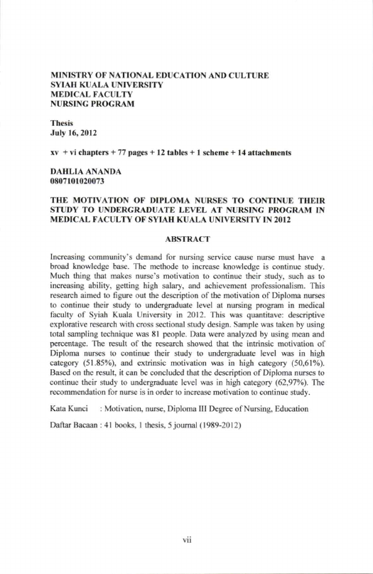 Baca Juga : FAKTOR-FAKTOR YANG MEMPENGARUHI MOTIVASI PERAWAT DALAM PENDOKUMENTASIAN ASUHAN KEPERAWATAN DI RUANG RAWAT INAP RUMAH SAKIT UMUM DAERAH DR. ZAINOEL ABIDIN BANDA ACEH (Ulfa Maulida, 2018)