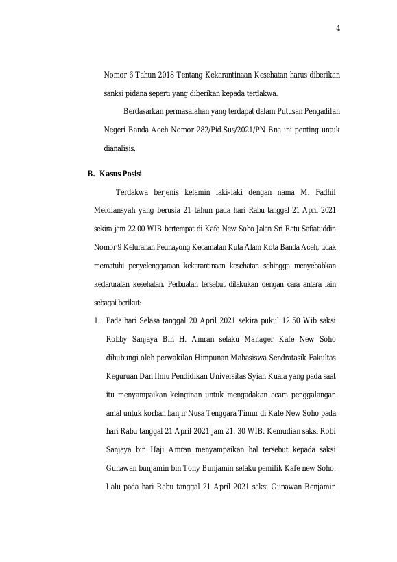 Baca Juga : STUDI KASUS PUTUSAN PENGADILAN NEGERI BANDA ACEH NOMOR 282/PID.SUS/2021/PN BNA TENTANG TINDAK PIDANA KEKARANTINAAN KESEHATAN (Fanny Ulfiya zari, 2022)