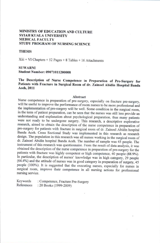 Baca Juga : GAMBARAN KOMPETENSI PERAWAT DALAM MANAJEMEN NYERI PADA PASIEN POST OPERASI DI RUANG RAWAT INAP BEDAH RUMAH SAKIT UMUM DAERAH DR. ZAINOEL ABIDIN BANDA ACEH TAHUN 2012 (Efi Sufiani, 2022)