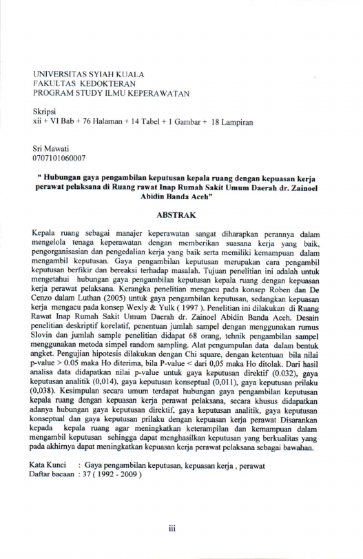 Baca Juga : HUBUNGAN KEPEMIMPINAN EFEKTIF KEPALA RUANG RNDENGAN KEPUASAN KERJA PERAWAT DI RUANG RNRAWAT INAP KELAS III RUMAH SAKIT UMUM DAERAH DR ZAINOEL ABIDIN BANDA ACEH 2012 (Riski, 2022)
