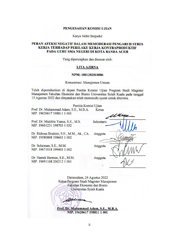 Baca Juga : PENGARUH STRES KERJA TERHADAP COUNTERPRODUCTIVE WORK BEHAVIOR DENGAN EMOSI NEGATIF SEBAGAI VARIABEL MEDIASI PADA GURU SMA NEGERI DI KOTA BANDA ACEH (NURUL FAJARINA, 2017)