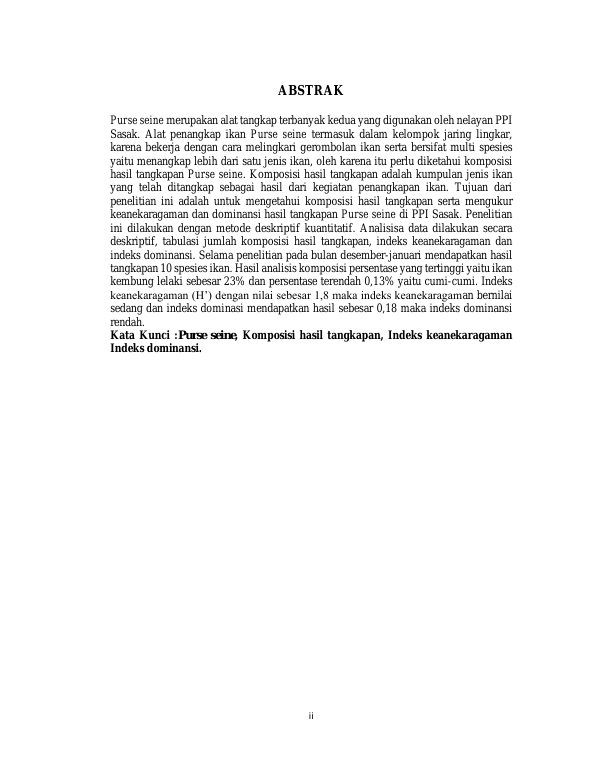 DINIA LEONY SANDRITA, KOMPOSISI HASIL TANGKAPAN PURSE SEINE DI PPI SASAK KECAMATAN SASAK RANAH PASISIE KABUPATEN PASAMAN BARAT. Banda Aceh Fakultas Ilmu Kelautan dan Perikanan,2022