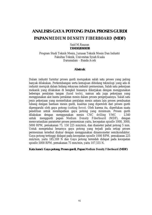Baca Juga : PENGARUH KONDISI PEMOTONGAN TERHADAP GAYA POTONG PADA PROSES GURDI MATERIAL PAPAN KOMPOSIT SERAT BATANG PISANG ABACA (Masrur, 2016)
