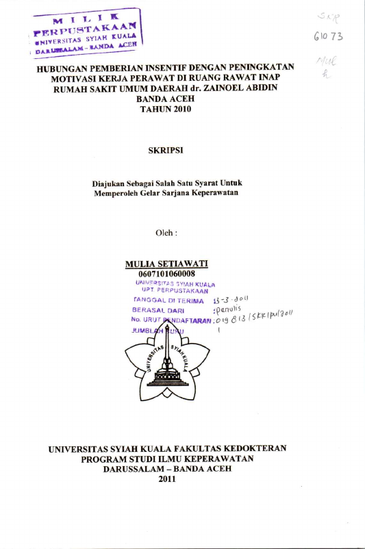 Baca Juga : FAKTOR-FAKTOR YANG MEMPENGARUHI MOTIVASI PERAWAT DALAM PENDOKUMENTASIAN ASUHAN KEPERAWATAN DI RUANG RAWAT INAP RUMAH SAKIT UMUM DAERAH DR. ZAINOEL ABIDIN BANDA ACEH (Ulfa Maulida, 2018)