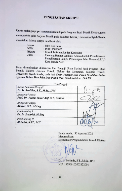 Baca Juga : RANCANG BANGUN APLIKASI ANDROID UNTUK PEMELIHARAAN LAMPU PENERANGAN JALAN UMUM (LPJU) KOTA BANDA ACEH (FIKRI EKA PUTRA, 2022)