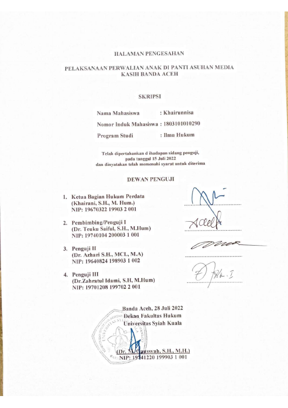 Baca Juga : TANGGUNG JAWAB HUKUM PANTI SOSIAL ASUHAN ANAK DARUSSA’ADAH SEBAGAI WALI TERHADAP ANAK ASUHNYA DI KABUPATENACEH BESAR (Cinthia Novami, 2017)