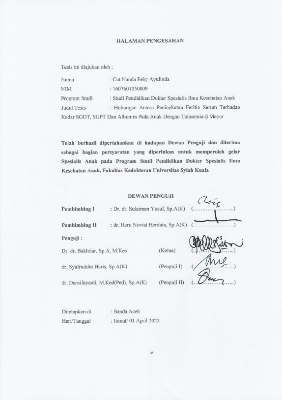 Baca Juga : KORELASI KADAR FERITIN SERUM TERHADAP HASIL UJI TUBERKULIN PADA ANAK DENGAN TALASEMIA-β MAYOR DI RSUDZA BANDA ACEH (dr. Yeni Maryati, 2022)