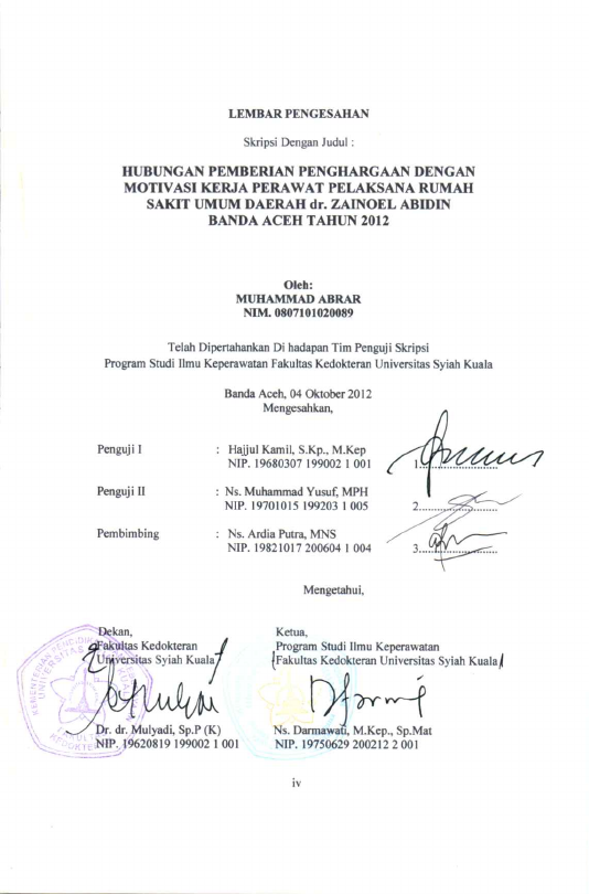 Baca Juga : HUBUNGAN PEMBERIAN PENGHARGAAN DENGANRNMOTIVASI KERJA PERAWAT PELAKSANA RUMAH SAKIT UMUM DAERAH DR. ZAINOEL ABIDIN BANDA ACEH TAHUN 2012 (Muhammad Abrar, 2022)